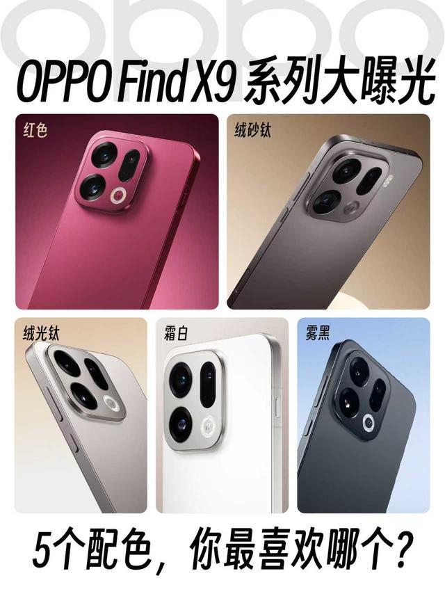 至于配色方面,OPPO Find X9系列有霜白、雾黑、绒光钛、绒砂钛以及红色,全新绒砂工艺、一体化冷雕玻璃的加持,整体质感看起来很不错,手感值得期待。