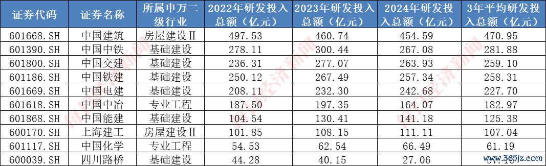 基建板块研发费用占比高,7家“中字头”研发投入领先